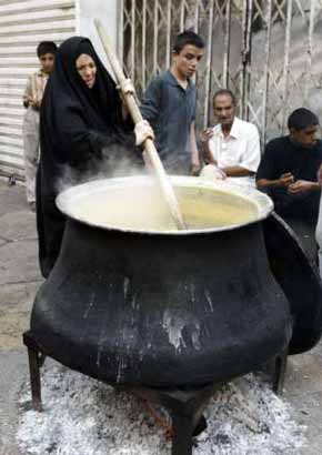 پختن نذري براي عزاداران امام کاظم(ع) در بغداد