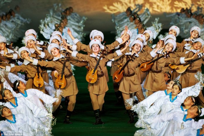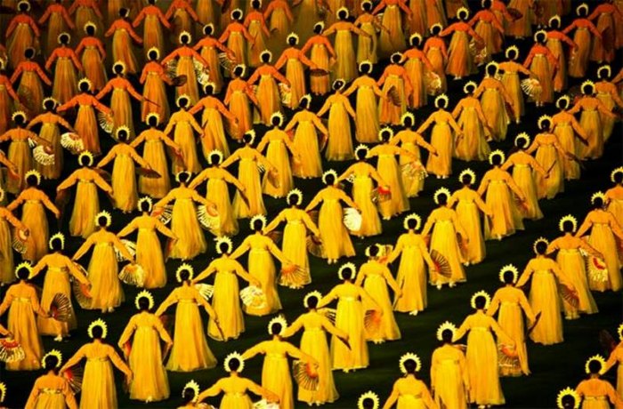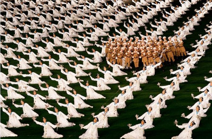 برای نخستین بار یک عکاس آلمانی مقام‌های کمونیستی کره شمالی را متقاعد کرده که اجازه دهند تا از نزدیک از برگزاری یک مراسم عمومی در استادیوم ملی این کشور عکاسی کند. بر اساس این گزارس، بیش از 100 هزار تن از شهروندان کره شمالی که اغلب آنان ژیمناستیک‌کار بوده‌اند در این مراسم شرکت داشته‌اند. گفته شده که سرعت و دقت بسیار زیاد این گروه بزرگ از مجریان این مراسم، برای عکاس آلمانی که برای نخستین بار توانسته بوده تا از نزدیک شاهد برگزاری چنین مراسمی باشد بسیار شگفت‌انگیز بوده است.