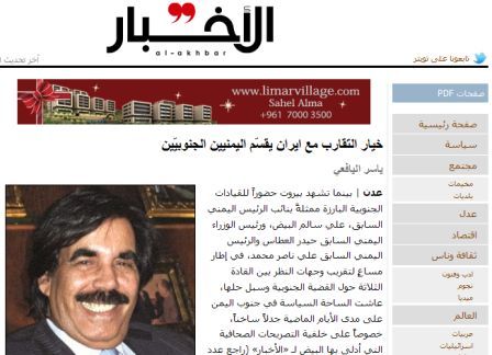 روزنامه الاخبار چاپ بیروت در مطلبی نوشت: رابطه با ایران، فعالان جنوب یمن را به دو دسته ، تقسیم کرده است.