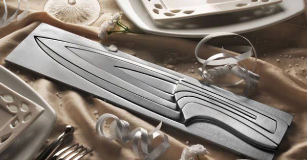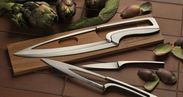 یک شرکت فرانسوی تولید کارد و چنگال، مجموعه ای زیبا از یک سری چاقو ارائه داده که در عین جمع و جور بودن بسیار زیباست. این مجموعه شامل 4 چاقو و از جنس فولاد ضد زنگ ساخته شده است.