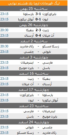 برنامه یک هشتم نهایی لیگ قهرمانان اروپا