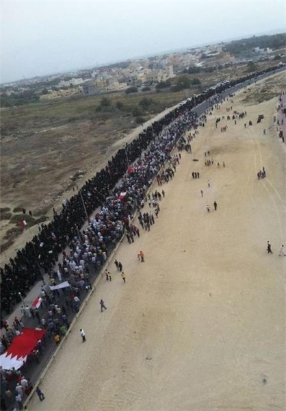 بحرینی‌ها در ادامه انقلاب مسالمت‌آمیز خود، بار دیگر به خیابان‌ها ریختند و بر مخالفت خود در زمينه گفت‌و‌گو با رژیم آل خلیفه تأکید کرده و خواستار محاکمه و بازخواست عاملان قتل مردم، بویژه "پادشاه" این کشور شدند.