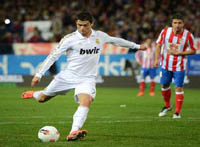 رونالدو پس از گل دوم خود به اتلتیکو مادرید، در حرکتی جالب، عضله پای راستش را به نشانه قدرت نمایی، به تماشاگران نشان داد.