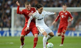 ماریو گومز و کریم بنزما تا پایان نیمه اول دو بار تا آستانه گلزنی پیش رفتند اما شوت سرکش بنزما از کنار دروازه بایرن راهی اوت شد و گومز نیز در موقعیتی تک به تک با کاسیاس، توپ را به پای دروازه بان باتجربه رئال کوبید.