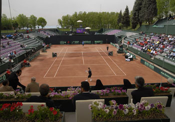 * پس از بارش سیلآسای روز گذشته که زمین تنیس را تبدیل به دریاچه کرده بود، با تلاشهای مسئولان برگزاری رقابتها، شرایط برگزاری مسابقات کاملا فراهم بود و خبری از خیسی زمین نبود.