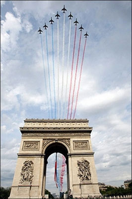 مانور هواپیماهای آلفا جت متعلق به ارتش فرانسه در بزرگداشت "روز فتح باستیل" - پاریس