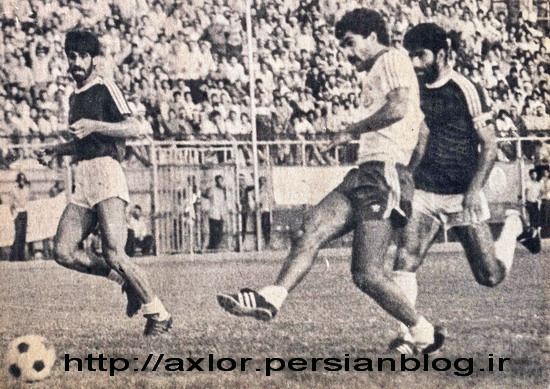 عصر ایران ورزشی - سیروس قایقران در بازی پرسپولیس و ملوان بندر انزلی. مرتضی فنونی زاده (راست)، مدافع سال های دور پرسپولیس، در تعقیب قایقران است.