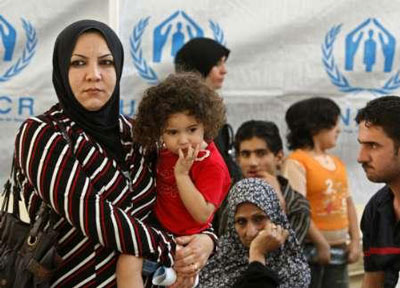 پناهندگان عراقی نام خود را در مرکز کمیساریای عالی پناهندگان سازمان ملل در حومه دمشق ثبت می کنند (سوریه میزبان یک میلیون آواره عراقی است)