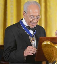 پرز در سفر اخیر خود به آمریکا طی مراسمی از باراک اوباما رییس جمهوری آمریکا مدال آزادی دریافت کرد . پرز به دلیل تلاش هایش برای انعقاد قرار داد صلح اسلو با فلسطینینان در سال 1994 به طور مشترک با یاسر عرفات جایزه نوبل صلح دریافت کرده است.اعطای این جایزه به پرز با انتقاد بسیاری از فعالان صلح در جهان مواجه شده است.