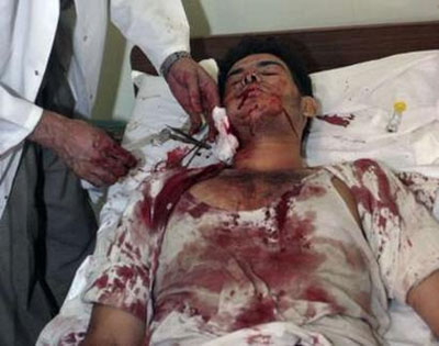 یک مصدوم حادثه بمب گذاری - بیمارستانی در فلوجه عراق
