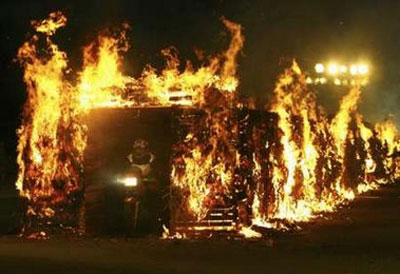 عبور یک موتورسیکلت سوار از درون تونل آتش – استان جیلین در شمال شرقی چین