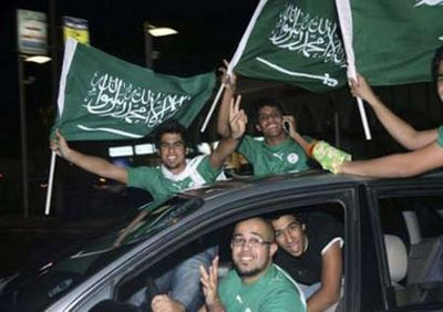 جشن هواداران عربستان پس از پیروزی تیمشان بر ژاپن و صعود به فینال جام ملتهای آسیا