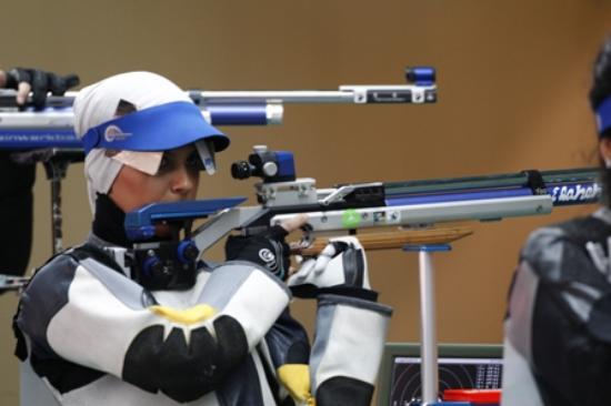ايران در المپيک لندن با سه سهميه مستقيم حضور پيدا کرد که الهه احمدي توانست بهترين نتيجه تاريخ تيراندازي ايران را رقم بزند و به مقام ششمي اين بازي‌ها دست پيدا کند. همچنين مه‌لقا‌ جام‌بزرگ و ابراهيم برخورداري ديگر نمايندگان ايران در المپيک بودند که نتوانستند به مرحله فينال راه پيدا کنند.