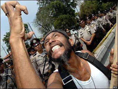 اعتراض دانشجوی اندونزيايي به شرکت بزرگ معدنکاری آمريکا