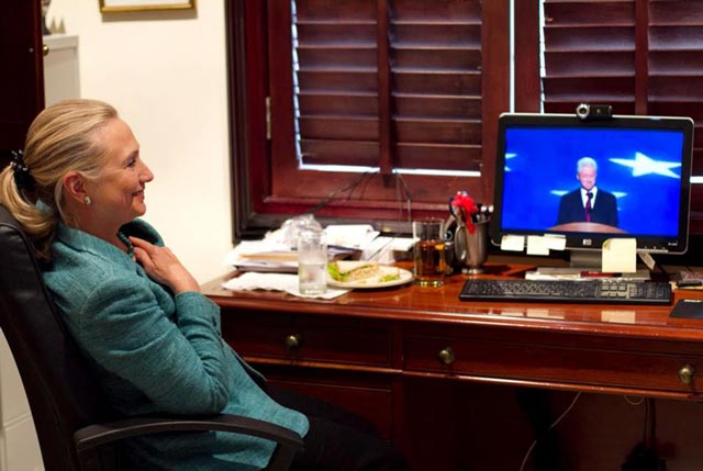 عصر ایران - هیلاری کلینتون وزیر خارجه آمریکا که برای یک تور دو هفته ای آسیایی مشغول سفر به چند کشور است ، سخنرانی همسرش بیل کلینتون در کنوانسیون حزب دموکرات را از طریق اینترنت تماشا می کند.