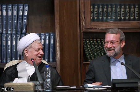 لبخند هاشمی و علی لاریجانی در مجمع (عکس)