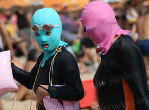 پوشش عجیب زنان چینی در ساحل (+عکس)