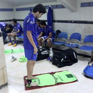 خسرو حیدری بازیکن استقلال در حال نماز خواندن در رختکن استقلال.
