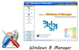 Windows 8 Manager یک نرم افزار فوق العاده در زمینه بهینه سازی سرعت، افزایش کارآیی، حذف فایلهای بیکاره، بهینه سازی ریجیستری، انجام تنظیمات امنیتی و سایر موارد کاربردی برای ویندوز ۸ میباشد. نسخه ای که بر روی سایت قرار گرفته است اولین نسخه منتشر شده این نرم افزار برای ویندوز ۸ میباشد. این برنامه قادر است تا به آسانی و تنها چند کلیک ساده ویندوز ۸ شما را تا حد ممکن بهینه سازی نماید.