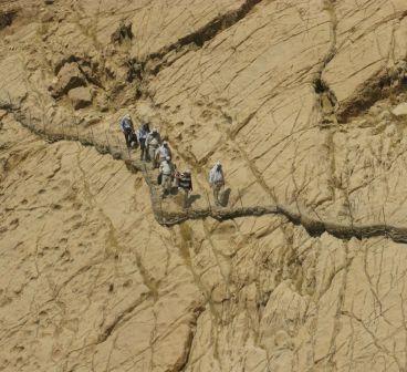 اقتصادايران آنلاين:تردد مهندسان در مسیرهای صخره ای خطرناک با شیب ۸۵ درجه - ساختگاه طرح مطالعاتی سد و نیروگاه برق آبی شهبازان در حوضه رودخانه دز - واقع در بالادست «سد دز» در استان خوزستان – شهریور ۹۱ – شهبازان، روزی، کارون۳ و کارون۴ دیگری خواهد شد.