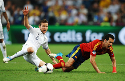 در حالی که سه دقیقه وقت تلف شده نیمه دوم هم به پایان رسیده بود، اشتباه بازیکنان اسپانیا در میانه زمین فرانسه، سفیدپوشان فرانسوی را صاحب یک ضدحمله کرد. فرانک ریبری از سمت چپ وارد محوطه جریمه اسپانیا شد و با سانتری عالی با پای چپ، توپ را برای ژیرود فرستاد و او نیز با یک ضربه سر دقیق و زیبا، دروازه کاسیاس را فروریخت.