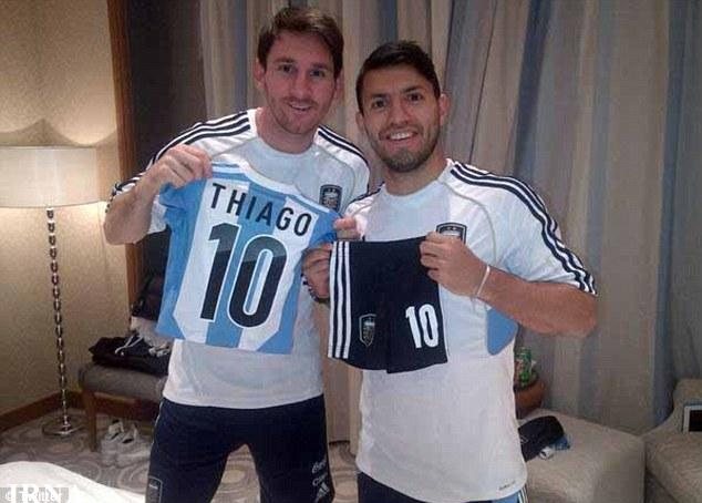 مهاجم بارسلونا که هفته گذشته با 75 گل در یک سال رکورد پله را شکست به نظر می رسید از دریافت این هدیه شادمان شده چرا که پیراهن کوچک شماره 10 تیم ملی آرژانتین که نام ˈ تیاگوˈروی آن نقش بسته را در دستان خود گرفته و در کنار آگرو عکس گرفته است.