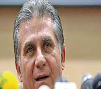 وي در پاسخ به اين سوال که مهاجم نوک شماره يک شما در تيم ملي کيست؟ گفت: همانطور که مي دانيد کريمي، قاضي، انصاري فرد، دژاگه و قوچان نژاد بهترين مهاجمان ايران هستند. اما متاسفانه عملکرد پرسپوليس در چند ماه گذشته آن طور که انتظار داشتيم خوب نبود و باعث شده بسياري از بازيکنان ملي پوش اين تيم عملکرد هميشگي خود را نداشته باشند. من هم نمي توانم جادو کنم و هر روزي بازيکنان باکيفيت جديد توليد کنم. براي مثال در بازي با لبنان ما 7 بازيکن اصلي خود را نداشتيم. با اين حال با وجود عيبت بازيکنان اصلي مان هم بايد بهتر بازي مي کرديم و آن نتيجه دور از انتظار بود.