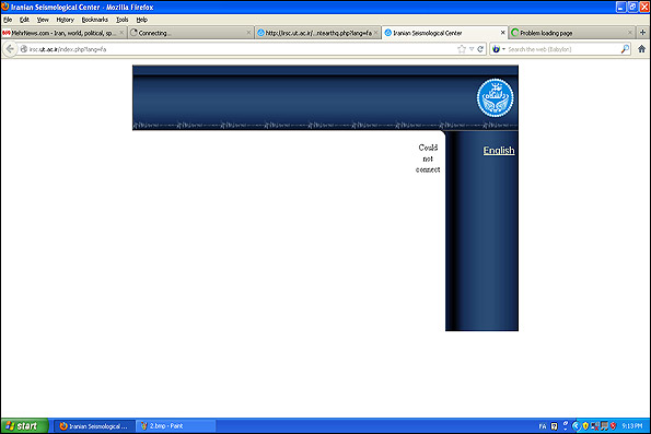 همچنین سایت پژوهشگاه بینالمللی زلزله شناسی و مهندسی زلزله به آدرس www.iiees.ac.ir دیگر سایت مرجع است که آن نیز در هنگام زلزله به شکل زیر در می آید: