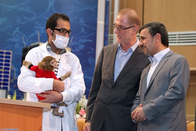 بازدید احمدی نژاد از میمون فضانورد (عکس)