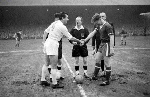 این عکس مربوط به سال 1957 و رویارویی دو تیم رئال مادرید و منچستریونایتد در ورزشگاه اولدترافورد است.