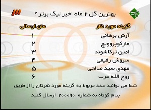 برنامه نود در ساعت دو و بيست دقيقه بامداد سه شنبه به پايان رسيد و حدود 2 ميليون و 300 هزار پيامک به مسابقه نظرسنجي ارسال شد که در پايان گل پروويچ با 57 در صد از آرا عنوان بهترين گل دو ماه اخير فوتبال ايران را از نظر مخاطبان نود به دست آورد.