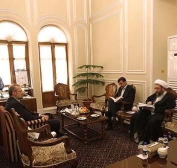 سران سه قوه بعد از صرف نهار کاری در دفتر رئیس قوه مقننه، جلسه خود را آغاز و در مورد مسائل مختلف داخلی و خارجی با هم به بحث و تبادل نظر پرداختند.
