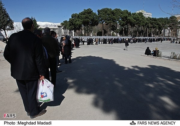 صف فروش برنج با قیمت کمتر در بازار بهاره در مصلی تهران.