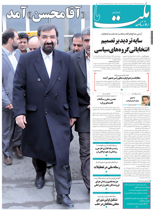 تيتر انتخاباتی روزنامه محسن رضايي (عکس)