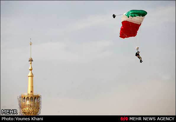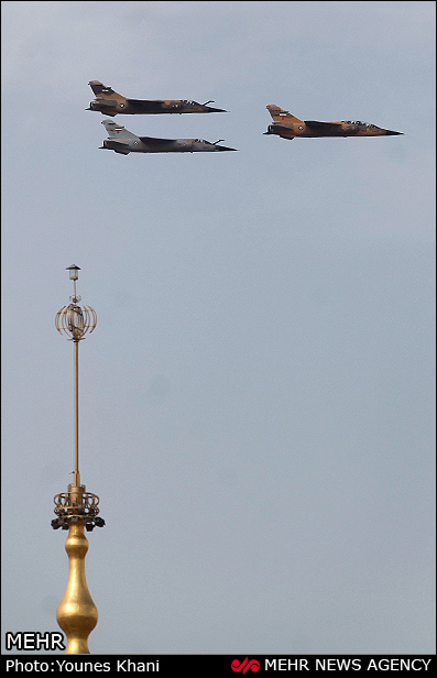 در رژه امروز همچنین جنگندههای شکاری ارتش جمهوری اسلامی ایران توان نیروی هوایی ارتش را به نمایش گذاشتند. اجرای عملیات چتربازی توسط تیپ 65 نوهد، پرواز انبوه بالگردهای هوانیروز و عملیات سوختگیری هوایی جنگندهها از دیگر بخشهای رژه روز ارتش بود.
