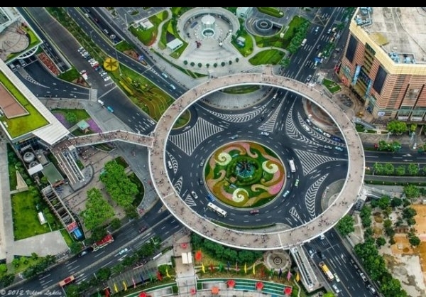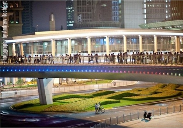 این پل عابر پیاده در لوجیازوی (Lujiazui ) واقع در منطقه پودونگ (Pudong) در محدوده شانگهای در سال گذشته پرده برداری شد.