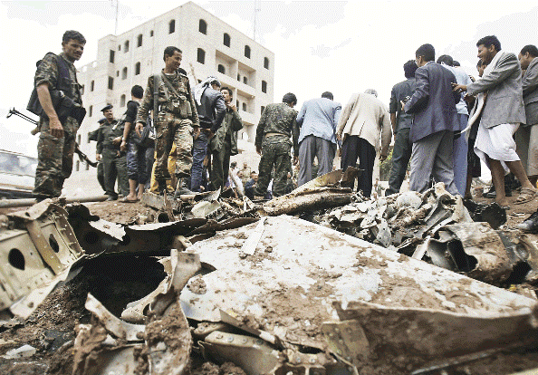 سقوط جنگنده در منطقه مسکونی پایتخت یمن (+عکس)