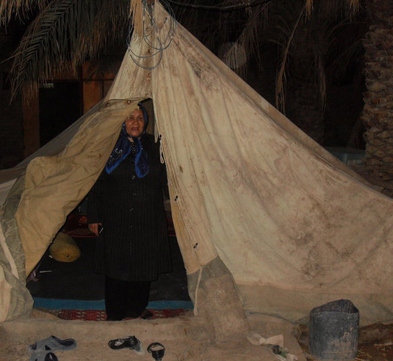 10 سال از زلزله بم میگذرد اما تنها بانوی مقامدان بم زیر یک چادر پاره زندگی میکند و سقف خانهاش آسمان است.
