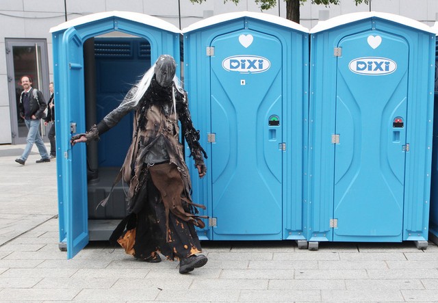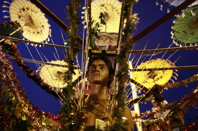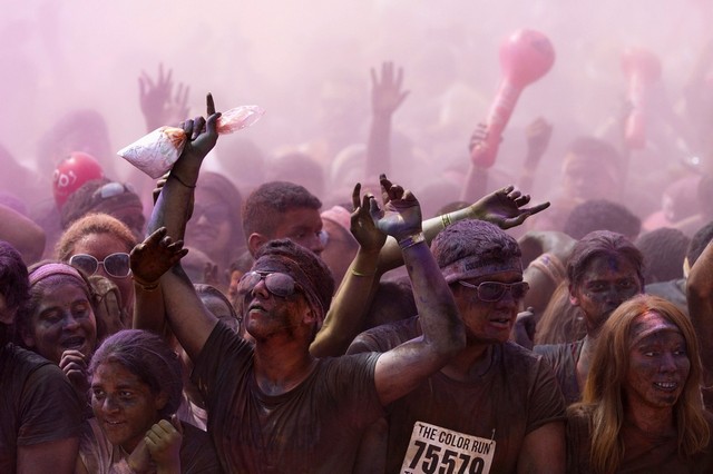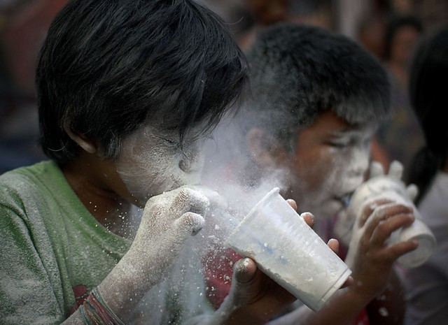 مسابقه دمیدن در لیوان پر آرد در جریان یک فستیوال سالانه در شهر مانیل