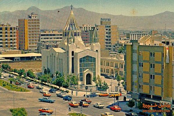 تصویر تقاطع ۲۵ شهریور (کریمخان کنونی) و ویلا (استاد نجات اللهی کنونی) در سال ۱۳۵۴ شمسی