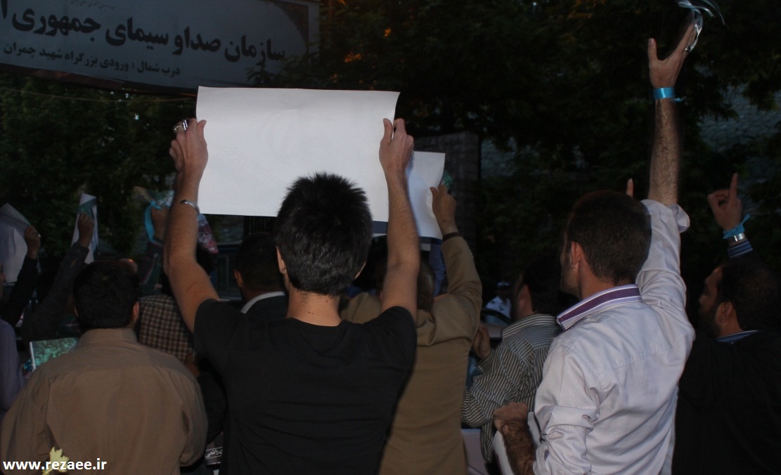 پس از اعتراض محسن رضایی به شیوه برگزاری مناظره ها در همان ابتدای بخش نخست برنامه امشب و سپس طرح موضوع دوباره و همراهی برخی کاندیداها در بخش دوم مسابقه ریاست جمهوری، جمعی از حامیان محسن رضایی که به قصد استقبال و مشایعت دبیر مجمع تشخیص مصلحت نظام در مقابل در چمران صداوسیما حضور یافته بودند، نسبت به روند و شیوه توهین آمیز برگزاری مناظره ها اعتراض کردند که محسن رضایی با حضور در جمع ایشان، مردم حامی اش را دعوت به آرامش و صبر کرد.