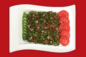 حالا سالاد آماده شده را در ظرف زیبایی بریزید و آن را با چند شوید و خیار و گوجه تزیین کنید ..