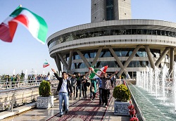 پس از بازی، دوباره لابی برج میلاد: تماشاگران در حال پایین آمدن از برج، سرود "ای ایران" می خوانند و برای ثبت این روز تاریخی، عکسی به یادگار می اندازند.