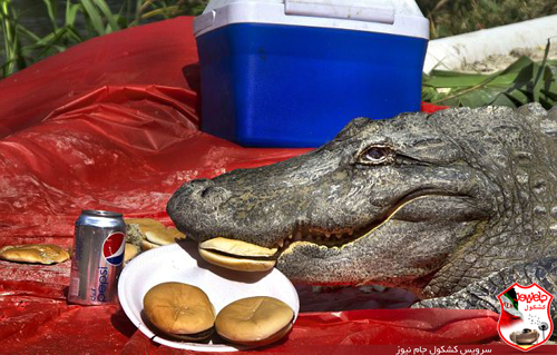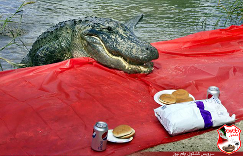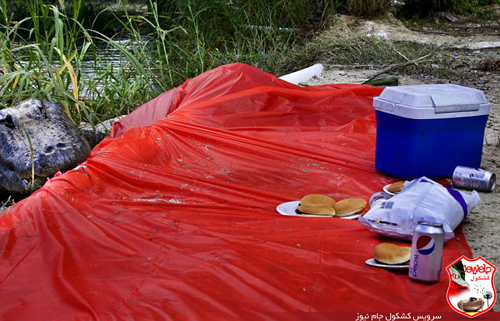 این گروه که در کنار دریاچه ای در شهر هامستید فلوریدا اطراق کرده بودند، درست زمانی که بساط ناهار را مهیا کردند ناگهان یک تمساح سر از دریاچه بیرون آورد و به سمت آنها آمد.