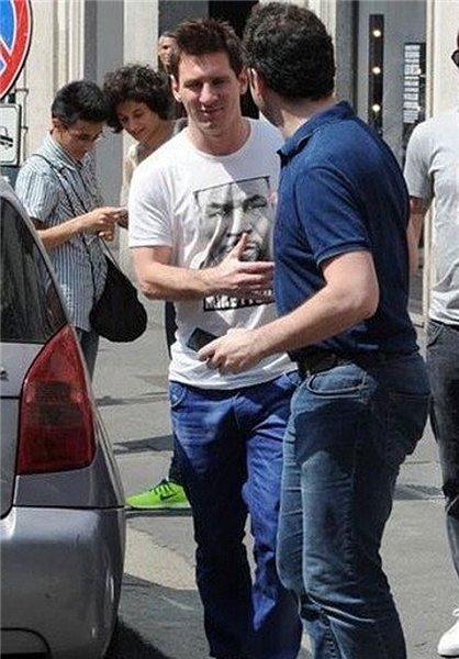 ستاره تیم فوتبال بارسلونا با پوشیدن پیراهنی که تصویر بوکسور آمریکایی بر روی آن نقش بسته بود،