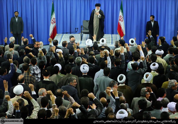 حضرت آیتالله خامنهای رهبر معظم انقلاب اسلامی صبح امروز در دیدار رئیس، مسئولان و قضات دستگاه قضایی، با تشكر از اقدامات دستگاه قضا، حماسه عظیم و حقیقی ملت بصیر و هوشمند ایران را در انتخابات 24 خرداد، كاری كارستان خواندند و با تأكید بر ضرورت كمك به رئیس جمهور منتخب افزودند: شكست همه جانبه برنامه ها و اهداف دشمنان، تجلی اعتماد عمومی ملت به نظام اسلامی و مجریان و ناظران انتخابات، وجود امنیت پایدار به عنوان زیر ساخت پیشرفت و آبادانی، نجابت و قانون پذیری نامزدهای دیگر در قبال رئیس جمهور منتخب، و استحكام و اقتدار جمهوری اسلامی در دفاع از منافع ملت از نكات مهم انتخابات اخیر بود.