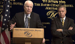 در این مصاحبه لیندسی گراهام دیگر سناتور ارشد آمریکایی که به همراه مک کین به اسراییل رفته است، گفت:" این خوب نیست که شما به رهبر یک کشور بگویی این خط قرمز من است و او از آن خط عبور کند و هیچ کاری انجام ندهی. ایرانی ها باید بدانند که آمریکا در مخالفت با برنامه اتمی آنها جدی است. از نظر من سیاست های ما در قبال سوریه پیام هایی نادرست به مقامات ایران و سوریه می فرستد."