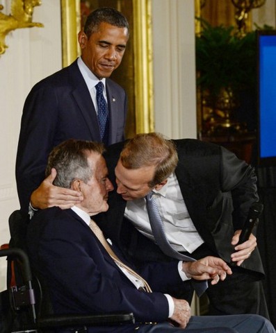 تجلیل اوباما از بوش پدر (رییس جمهور اسبق آمریکا) در کاخ سفید