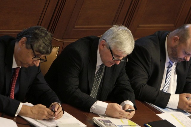 نخست وزیر و وزرای اقتصاد و کشور جمهوری چک در جلسه پارلمان این کشور با تلفن های های همراه خود مشغول هستند