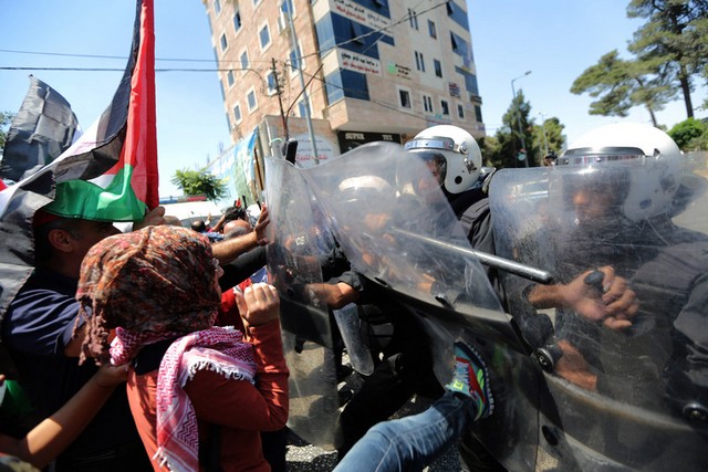 تظاهرات علیه گفتگوهای صلح با اسراییل در رام الله فلسطین